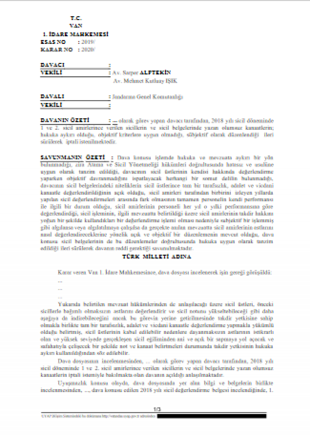 Sicil iptal davası ile ilgili emsal kararlara aşağıda yer verilmiştir. Ayrıca yakın tarihte Van idare Mahkemesi tarafından verilen sicil notu ve olumsuz kanaatin iptali kararını sayfanın altında yer alan dökümanlar bölümünden inceleyebilirsiniz.
